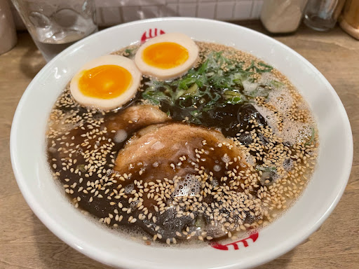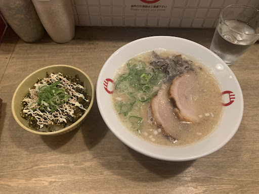 第2弾 今回はくろ豚骨(並)に高菜丼と餃子のセットを注文しました。濃いめの味でマー油?かな知らんけど美味しかった。チャーシューも安定の美味しさで高菜丼と相性が良いと思います。替え玉も半分できるのも嬉しい意外だったのは餃子で少し小ぶりの博多餃子がほんと!美味かった。外がカリッとして熱々で何か分からなかったがサッパリとした風味が良かった皿の横に柚子胡椒がのってるのも嬉しい。次回は餃子に生ビール🍺に挑戦してみよう😋