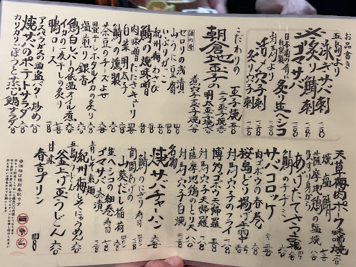 Read moreMackerel is the main izakaya. It is a restaurant with excellent fish aging and management, and mackerel dishes are considered one of the best restaurants in Fukuoka. Besides raw fish, various roasts and salads are also beautiful. Compared to other dishes, fried food is faithful to the basics. I'm sure it will be a satisfying time if you choose the menu in big letters on the menu or ask the owner, the main chef. It was a delicious dinner. If you don't make a reservation, make sure to make a reservation, knowing that it's a difficult restaurant to visit in the evening. Customers who don't speak Japanese may feel a little uncomfortable, but it's a...