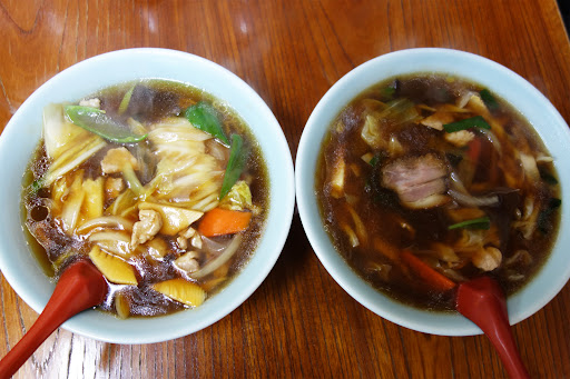 うーん、どっちが良いんでしょうねぇ…。 寒い日だったら全トロ系の『きりやそば』で、暑い日は半トロ系の『広東めん』かな(笑)。 いずれも大衆中華とホテル中華の中間に位置する、品性のある町中華のあんかけそばと思います。 いずれも猫舌の方には、かなり難関のメニューだと思います(笑)。
