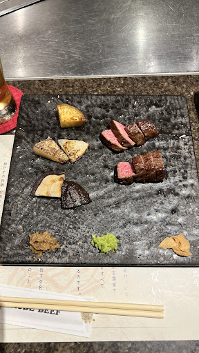 They brought out the beef so that I can take a picture. They asked for temperature (I said medium rare) and they cooked it on the teppanyaki.