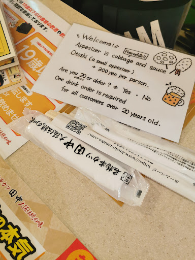 Located in a shopping mall, the setting is rather unusual for an izakaya. Upon arrival, the staff presents an English explanation card stating that a fixed charge of ¥300 per person (otoshi charge) will be added to the bill, even before any order is placed. The dishes here are typical of an izakaya. Portions are small, but prices match. Service is decent, and the...
