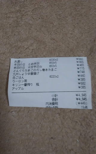 Read more大人4名、子供(小学校低学年)3名で訪問 残飯みたいなお通しがしっかり7つ出てきました。 当然会計もお通し7人分しっかり取られました。 駅徒歩30分、住宅街の立地で明らかにファミリー層を想定した店舗にもかかわらず子供からもお通し代をとるのはなかなかの経営センスですね。 まぁそれは店のシステムなのだろうから黙ってましたが、 頼んだ注文は通ってないのに頼んでない品が来る。 その頼んでない品(もちろん食べてない)もしっかり会計されてる。指摘された店員は仏頂面で謝罪もない。 控えめにいっても最低でした。 価格も品質に見合ってない、たまにやってる半額...