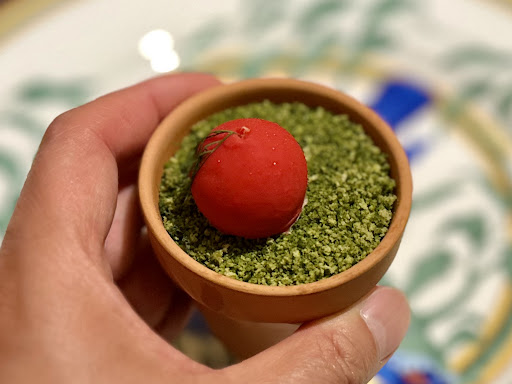 I recognised this French restaurant because it was located in a church-like complex and was reputed. We chose “Carte Blanche”. I expected detailed elegance with taste and presentation. Starting from the interior decoration, I found it traditionally Japanese classical western. Neither modern nor tacky. When we sat down, there was a Hermès plate in front of each of us, just for display. It was taken away after the amuse-bouche. The presentation of the food was good but the taste of the food did not bring much surprise to my taste buds. Don’t misinterpret me. The food was good in taste and the cooking skills were great. But the taste was within my expectation. The combination of different materials/textures did surprise but not on the good terms. And the portion was huge. The price was not high. But I expected surprising taste with elegance portion so that the taste would linger in the air after I finished one dish. Well, I consider the food is good but there are so many details for pursuing excellence. By the way, the dessert cart at the end of the course was really amazing! They served good dessert. After the cart, they came with macarons and financiers. They were lovely. Do not skip...