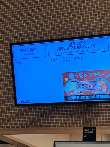 食券を入り口で、買い・・・・・・・そこまでは解っていたけど、買った食券を受付みたいな所に出すのかと思いきや、番号がモニターに表示されたら取りに来て下さい系で。