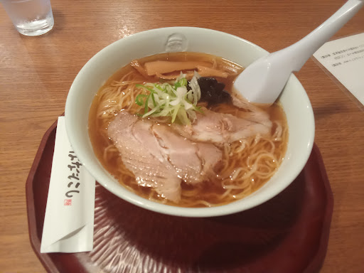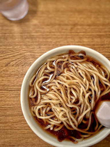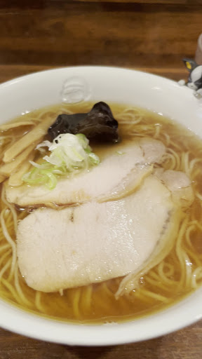 営業時間やら定休日やらで個人的に非常にハードルが高いはなもこし。 今日はどうかと立ち寄ると珍しく席は埋まっているものの外に待ち客なし。 これは何かの思し召し、ラッキーとばかりに店の前で待機して、さほど待たずにどうぞと中に案内される。 席に着きメニューを眺めると、あった中青井系中華そば。 何年か越しにやっとお目にかかれる。 漆黒の醤油スープは脂っ気が一切なくキリッとした醤油の旨みが際立つ。 出汁感もよろしく、フワァ〜っと漂う魚介の風味がイイねぇ。 合わさる麺は小麦感豊かな太麺で、ムチッとした食感が心地イイ。 醤油が染みた感じがまた美味い (^^) 後半、お好みでと供された七味をかけていただく。 少し風味が華やぐ感じでコレまた美味い。 ズバッと啜り上げてご馳走さん。 シンプル故、麺やスープの素性が存分に楽しめる一杯やね。 次回、間に合ったら限定の胡椒そばも啜ってみたいな。