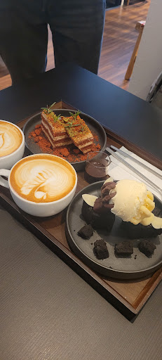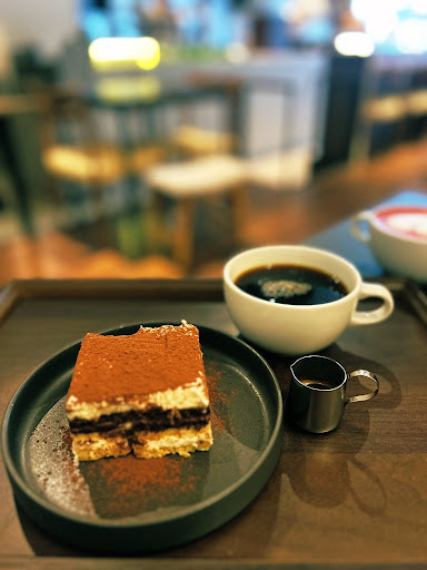 Read moreThey offered a sophisticated, industrial-style space that felt both modern and inviting. The atmosphere, with its open layout, high ceilings, and natural light, created an excellent environment for enjoying coffee and sweets. Their black coffee was served in a simple white cup, emphasizing the deep color of the brew. It had a smooth, rich aroma that hinted at its well-roasted beans. Upon tasting, it carried a nice balance of bitterness and acidity. Their tiramisu was elegantly plated on a black dish, which enhanced its visual appeal. The layers of mascarpone, coffee-soaked sponge, and cocoa powder looked well-balanced. The texture was soft and moist, with a light dusting of cocoa adding a gentle bitterness to complement the creamy sweetness. The depth of coffee flavor in the sponge layer ties it beautifully with the drink, creating a...