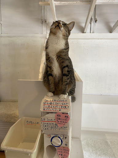 また、スペースに対して猫の数が多すぎます。あれだけの広さしかない狭い空間に無理矢理猫がぎゅうぎゅうに詰め込まれているような感じがしました。 猫のことを考えるならばあれではストレスを受けすぎてしまい、幸せではないと思います。 立地が良く、近くに競合店がないからお客さんが来るだけで、もっと素敵な猫カフェが近くにできたらお客さんは減ってしまうのではないでしょうか。