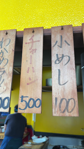 入店後、着席と同時に水を提供される。 注文は急かされることなく、決まったら教えてくださいと優しく言われる。 商品が決まり、らーめん500円とチャーハン500円を口頭で注文。 麺の硬さは聞かれないが、硬さを伝えると好みに合わせて茹でてもらえるよう。 卓上にある辛子高菜とキムチは無料。 ほどなくしてらーめんが着丼。 すでに乗せられた紅しょうがと太めに刻まれた青ネギが特徴的でお店の雰囲気からは想像しなかった爽やかな雰囲気の丼とスープの色 スープはポタージュ系のような甘味が強いながらも豚骨のコクをしっかりと感じ麺によく絡む。 チャーシューは厚めで歯応えがある。 まさか500円でこのクオリティとはこれもまた想定外 700円でも安く感じるレベル。 そしてチャーハンも到着。 まず量が多い。 そして見た目的にはアレですが口に含むとらーめんとの相性が良い。 らーめんを邪魔することなくチャーハン自体も存在感を示している。 九州ではチャーハンのことを焼きめしと表記しているお店が多いがこちらは表記がチャーハン。 ということもあってか九州の焼きめしにはつきもののカマボコの微塵切りが見当たりませんでした。 私としてはカマボコの入っているチャーハンを食べる文化で育っていないので特に気にはなりませんが珍しいなと思いました。 最後に替え玉をして卓上の辛子高菜に挑戦。 辛味はバシっと効いていますが後引く辛さではなくとても潔い感覚でした。 全体的に値段に対して量が多いので食べている途中で結構お腹が膨れていました。 完食してお会計1150円。 こちらは予想通り現金払いのみ。 この値段でこの腹の膨れ...