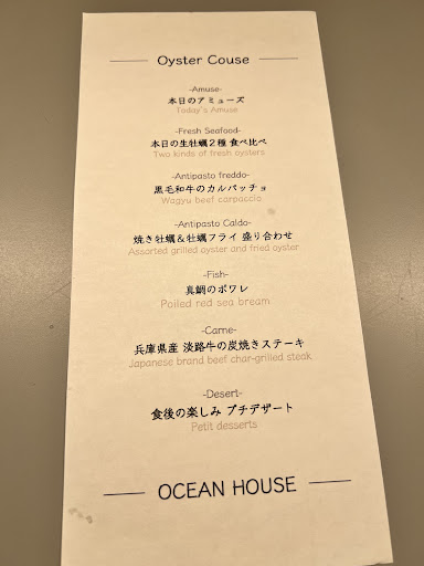 Read moreBooked a table at Ocean House through their website—super easy, just a 200-yen fee, totally worth it for the stunning ocean view. This place is seriously Instagram-worthy, especially at night with the vibe and lights. Went in hearing the food was so-so, but we were pleasantly surprised. Got a dozen Japanese oysters, and they were spot-on—fat, fresh, and yummy. Loved the tip to eat from mild to strong flavors; it really worked. The cheese and mentaiko (明太子) pizza was a highlight too, definitely recommend that one. Drinks, especially the alcoholic ones, were just okay—nothing special.