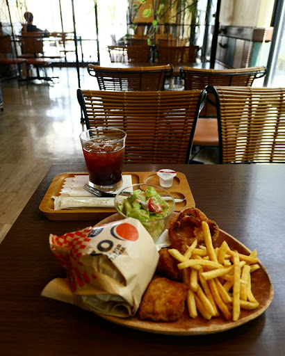 Read moreThe fries here are phenomenal, outstanding..the burger is hmmm...not bad..? Better than McDonalds at least and probably about Burger King level. Nothing stellar. Loved the mustard, nice bun and cheese, prob too much lettuce for such a thin patty-- it tasted like a lettuce sandwich essentially. Patty itself could have used more seasoning imo. I have the same complaint with the Karatsu burger patties. Location is kind of convenient for those driving through Fukuoka to Itoshima/Karatsu/Sasebo local road under the highway. Anyway def order those fries but there's probably tastier things to choose on the menu...