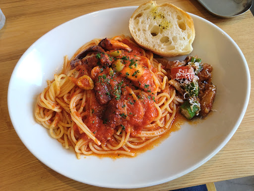 Read moreランチで伺いました。メニューはパスタのみ、副菜としてライスコロッケがありますが、メニューがパスタ好きにはたまらないです。 プッタネスカやアマトリチャーナなど、ジョリーパスタのようなチェーン系のパスタ専門店でもなかなか扱わない本当のイタリアン! オーナーがお一人でされていてなおかつ茹でたてのパスタなので少しお時間はかかりますが、今回は真ダコのプッタネスカ(税込¥980)を頂きました。抜群のアルデンテで恐らく乾麺で100〜120g(女性をターゲットにした場合の標準が80〜100なのでそこそこ食べる男性でもお腹満たされます)、ランチプレートには他にエキストラヴァージンオリーブオイルのかかったバケット、工夫して色々変えられているそうですが、本日は茄子とオクラのカポナータ、車で行ってしまったのが悔やまれるほどワイン飲みたくなるような美味しさでした。 久しぶりに美味しいパスタでした。 路地裏にある隠れ家のようなお店ですがオススメです! シェア用に2.5人前のラージサイズもありコスパ...