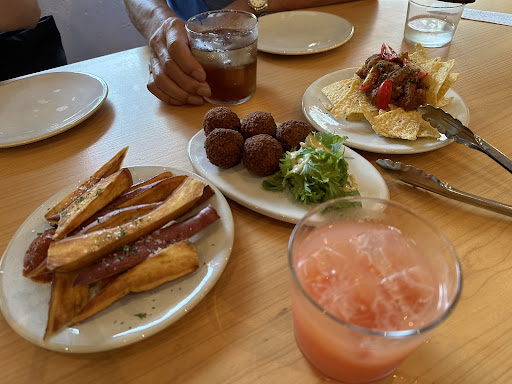The plate dishes include a few nachos , a falafel, salad, and sweet potatoes. So I recommend you to go for the plate if you want to try everything they have!