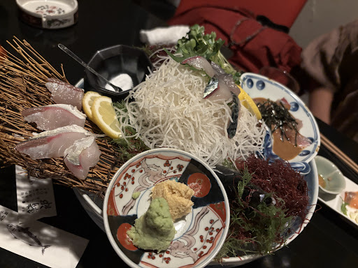 ビールと日本酒も注文しましたので、8000円を超えてきましたが、この内、お酒は2300円位ですので、お通し含めてフードは5500円位。 お酒は喜多屋の大吟醸が半合で1300円と高いの頼んでしまったことと、胡麻鯖をフルサイズで結局2種類頼んで2200円だったので、普通に頼めば、お腹一杯頼んでも5000円くらいに収まるお店と思います。