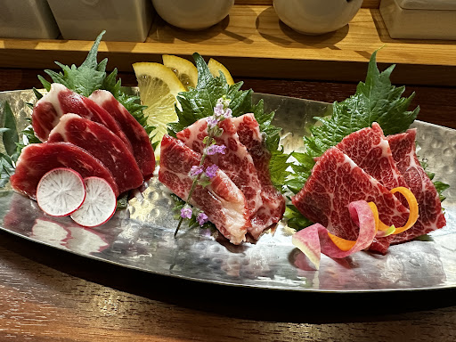 The horse meat sashimi was interesting, because it tasted like Toro with a slightly gamey taste.