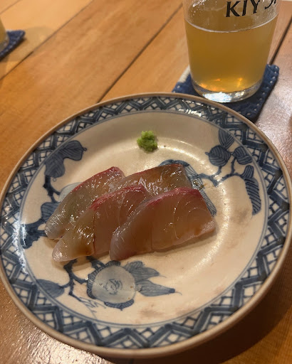 ・Natural flat sea bass sashimi The texture is chewy. It has a strong fish flavor and is well balanced with the grated grater. I was right when I started eating.