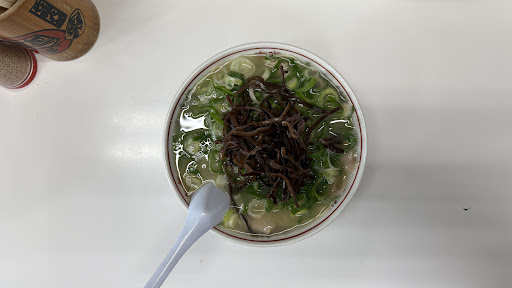 This long-standing ramen shop serves a classic-style tonkotsu broth with a light yet savory flavor. Thin noodles with a pleasant bite pair beautifully with a soup that exudes old-school charm. Topped with pork slices, generous green onions, and kikurage mushrooms — this bowl captures the soul of traditional Hakata ramen. A warm, nostalgic, and satisfying experience. Thank you for the wonderful meal!