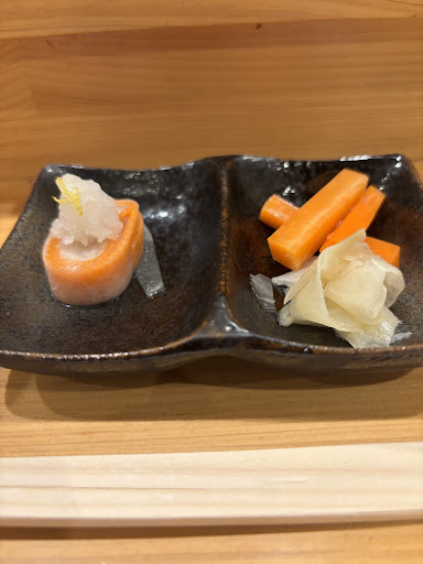 4.스시 샤리 풀림은 적당했으나 개인적으로 에도마에풍 스시를 선호하다보니 조금 기교가 있나 생각 했습니다. 깨가 많이 사용 되었고, 스다치인지 라임인지가 자주 사용 되었습니다. 전체적으로 달달한 맛이 있어서 먹다보면 점점 더 단 맛이 중첩되는 느낌이 있었습니다. 에도마에풍 스시를 선호하시느 분들께는 좀 달게 느껴질수 있겠고, 별다른 스시 취향이 없으신 분들께서는 불호 없이 쉽게 접근할수 있는 대중성이 좋은 코스였습니다.