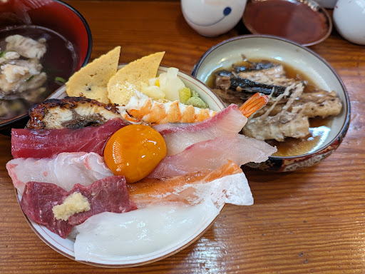 This is my 4.5th time at lunch. The menu has increased since its inception to include 3 types of nigirizushi (standard), 2 types of nigirizushi (high), 2 types of kaisen-don (seafood bowl), and 2 types of bara-chirashi sushi (sushi rice bowl). It is divided by quantity and quality. Sushi is served with soup and kaisen donburi is served with broth for ochazuke (rice with dashi soup). Kaisen-don ¥1,000 with additional ¥400 for more neta (fish) plus free large portion.(rice) The small plate was kanpachi cooked in a rough boil. I was thrilled to find whale and eel in the bowl as rare items. The number of customers is gradually increasing. Last time we couldn't get in because they ran out of items. It may be becoming a restaurant where you have to make a reservation to get in, but we are very satisfied with the overall customer service, quality, and price, and we like the restaurant very much. We will go there again without giving...