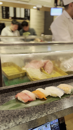 If you want to eat a very good sushi with very good cuallity of products I totally recommend this place. They have some very good things that make me grate this place with 5 stars. They prepare the sushi in front of you! The sushi master prepare all in front of your eyes. If you don't know what to eat, they have on the menu a variety of the best seller sushi and they included you a Miso soup and a temaki roll. They have 2 different tipes of soy sauce to have differents expiriences. They have also free green tea that you have to prepare by your self. They have an extensive variety of sushi that you can chosse from. They DON'T have seats, it's something unique because you need to be stand up and eat. It's very cheap! It's not a that cheap as "sushi ro" o "kura zushi" but it's worth it. In this restaurant they have all the other things that a normal restaurant need to have so I won't comment about the regular things.