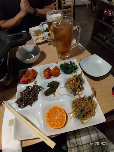 Went there for the samgyeopsal plus buffet meal with three other people. The taste is very authentically Korean, so the kimchi is JUST right. Since we ate a total of 7 slices of meat and two helpings of mini octopus, I didn't really need to get any refills of the Namul in the buffet, but I was able to get one of every dish to fill up 8 of the 9 spaces on my buffet plate, and that was at 8:00 PM! My favorite was the chapchae!! The owner was soooo nice and also gave us a plate of kimbap (omg, sooo good!!), a plate of deokbokki, and scallion pancake for free since it was our first time dining there. The lettuce was always stocked, so making ssam wraps was not a problem.