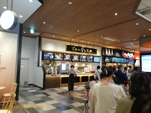 福岡のららぽーと、 フードコートの店舗数が充実してるので 小籠包等めちゃめちゃ食べたかったけど 友達からマジお腹いっぱいになるからと念押されてたので浮気せず 天丼一択で行列20分、オーダー後10分くらい待って着丼!