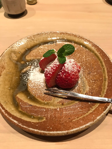 〆のデザートはなんとイチゴ! 芳醇な果肉の贅沢ないイチゴで天冨良料理の最後に申し分ないボリューム...