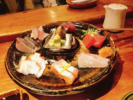 2020年10月 いつもの定位置、店の一番奥のカウンターの隅に座ります。 今夜、私が頂くのは.... ■桶盛り5種(マグロ、真鯛、サーモン、羽カツオ、つぶ貝) 脂がのったマグロとコリコリのつぶ貝がおいしかた。次回は単品刺盛り頂こうかな? ■トロ鯖みりん これは今日絶対食べようと思ってたヤツ、皮まで美味しい ■雪れいたけ醤油バター焼 店員さんオススメだったのでチョイス。雪れいたけは椎茸の様な形ですが、色は真っ白で、香りも穏やかなので、バターの香りが引き立ちます。 ■きびなご天 身がふっくらして、塩加減もちょうど良く、つまみに最適でした。 キープしてある黒霧をちびちび飲みながらいただきました。 ・ 本日も店員さんは元気で気持ちが良いです。ちょこちょこ相手をしてもらい楽しいひと時を過ごしました。ごちそう様でした。