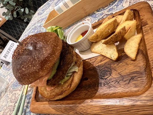 Burger 5/5 price to quality is good. For meat lovers take the double patty cheeseburger, portion is big and patty and bun and chesse all delicious Potatoe Wedges 2/5 this was really the weak point of the meal. They force a mustard-ketchup and the potatoe wedges were honestly so so: too dry not crispy Salad 4/5 : great portion a good dressing overall Drinks 5/5: for 150yen you get a nice drink and again quantity matters and they nailed it! I recommend the ice tea which feels lile a homemade ice tea full of earl grey flavours Ambiance 4/5: its cozy and cute. Wish they had more tables...