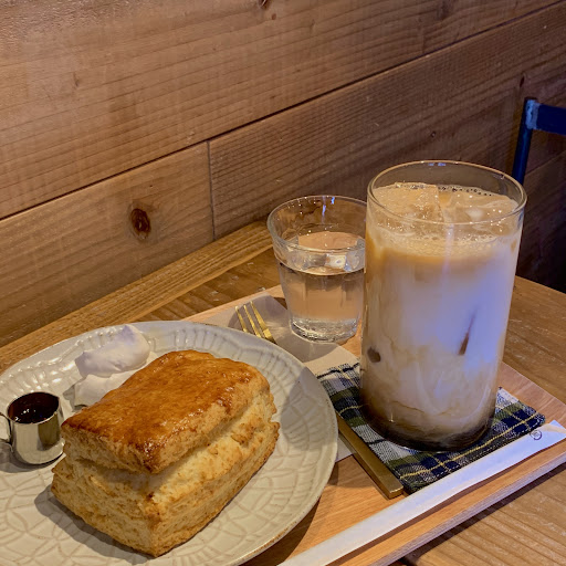 コーヒーは別メニューになっていて レジ横にあり、それに気づかず、カフェラテとスコーンをいただきました。 香りの良さを楽しみながら、スコーンのバターや粉の食材の味とのバランス感覚のセンスと時間がかかっているんだろうなと想像できました。