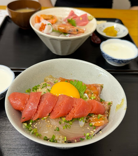 Prices are about the same as the others. We had the mentaiko set and the ikura salmon don, both of which come with a small bowl of miso soup or soba noodles.
