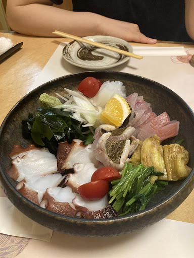 Read more初来店でした 料理 美味しかったです 住んでる近くにあると嬉しいお店です 料理は ・刺し盛り1人前から注文でき 刺身以外に焼きナスなど入っており嬉しいですね ・カナトフグの唐揚げ 揚げる前に下味を付けるので初めに頼むのをおすすめします ・つくしの旨煮 僕はもう少しえぐみがあるほうがすきです みんなが食べれるようにだとこの味になると思います ・ご飯セット 柔らかめのご飯で美味しいです