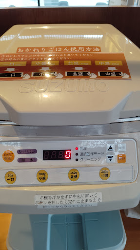 You can look at the menu from outside if you like. Then choose what you want to eat at the machine and pay immediately. You can set it to English and also choose when you want your drinks, immediately or with your meal. It also takes Credit Card! * Then you enter and tell the person for how many people you need a table for and they will suggest one. While you sit down the person takes the coupons of what you ordered and tells you that you can go to the machine in the middle of the room to get water if you like. There you can get a glass and choose between hot and cold water. Also at the same place is the 'fresh rice dispenser' if you want seconds later. When you leave you basically leave everything on the table, get up and leave. They give you a container for leftovers if you ask.
