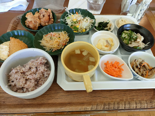 Read more平日13時。ランチ850円でした。(値上がりしたようです) 接客が障害者の方のようで、少し言葉が聞き取りにくかったり、イレギュラーなことを聞くとうまく意思疎通できなかったり、対応がゆっくりだったりしますが、それ以上にとにかく丁寧で誠実な感じが伝わってきて温かい気持ちになりました。 ビュッフェなどその店独自のオペレーションの店は初めてのとき敷居が高く感じますが、中に入った瞬間から座席の案内、ランチの説明まで非常に丁寧で迷うことなくありつけました。 ただ、おそらくすべてのお客さんにこれをしているので、毎日通ってる人には「そこまでしてくれなくても」と思うところはあるかもしれません。 料理の味は「家で作ったごはん」って感じです。 外食に慣れていると薄味に感じますが、変なもの使ってなさそうな安心感があります。 デザートとドリンク以外はおかわりできるので量に不満が出ることはないです。というかおかわりしなくても充分な量です。 ごはんが白米と雑穀米が選べるのがとても嬉しかったです。 昼食後の仕事で人一倍眠気が強く、糖質をとにかく避けたいのですが、外食で糖質を避けるのってほぼ無理なんですよね。雑穀米はすごく助かります。 1つだけ強いて不満を上げると駐車料金割引になることを後で知ったことです。 駐車場入口に料金の看板があり、そこにレジで割引できる旨が書かれていますが、これに気付かず、店内にはその告知も店員さんからの案内もなかったので、気付かずじまいでした。 もともと60分100円という安さな...