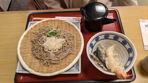 私は真あなご天つけ蕎麦で、妻が大海老天つけ蕎麦を注文しました。