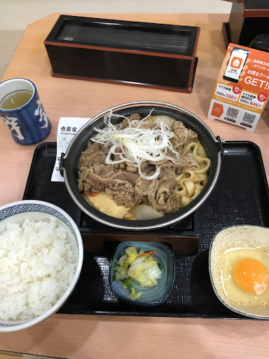 通常の吉野家と違い、レジで注文して支払い、呼び鈴を貰って、料理が出来上がると呼ばれるので受取口に取りに行き、食べ終わったら食器は返却口に持って行くスタイル。 外国人の様な見た目の店員さんがレジ対応をしてくれているが心配する事なかれ。コミュニケーションは素晴らしく丁寧。 セルフで水等を用意。別料金だがドリンクバーも有り。カウンター席には電源とUSB充電有り。 駐車場もコンビニと共用なので広い。