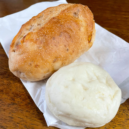 お値段もお手頃で、甘い系しょっぱい系といろいろあって迷いました。小さいサイズのパウンドケーキはバナナとガトーショコラで、どちらも生地がしっとりしてました。丸いのは塩パンでもちもちがたまりません。ラスクは食感が固めで、ガリガリしててこれもまた美味しい。