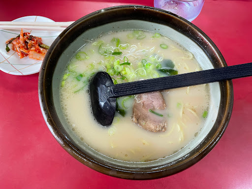 Read more2022年4月訪問 土曜日のランチタイム 20年ぶりの訪問 当時もお世辞でも 綺麗なお店では ありませんでしたが 平成から時が止まっています 訪問客はラーメンは食わず ほぼビールを飲んでる 餃子やチャーシューをアテに 1番安いAランチ650円 以前もコレを頼んでいました ラーメンライスに目玉焼き キムチは食べ放題です ニンニク臭さは控えめで 美味しいです まず目玉焼きとライスが その後少ししてラーメン提供 時間にして約5分 ビジュアルは当時のまま 嬉しくなります スープはアッサリ豚骨 麺は多加水中太麺 完全にのびています チャーシューはバラ肉 歯ごたえのある奴です ライスはポツポツ茶色い斑点米 目玉焼きは半熟加減が抜群 思い出補正と言うもの...