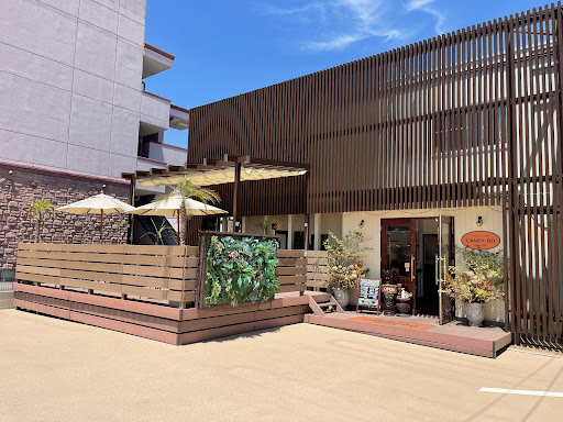 お店はハワイ風でオシャレ、デートに良さそうテラ...
