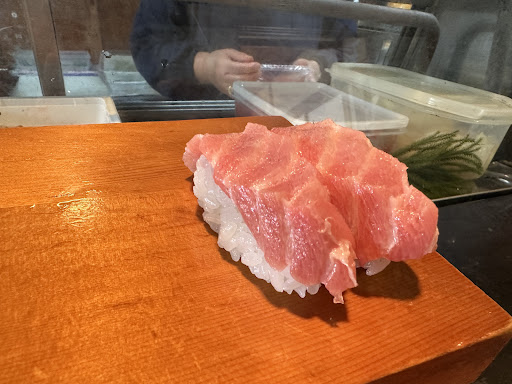 一貫目からネタ·シャリの大きさに驚きながらもまぐろ、トロと続き中には珍しい数の子も。エビも蒸したものではなく生の丁寧に開いて処理されたものが出されました。 空腹なのを察されたのか次々に握ってくださりあっという間に一通りを食べてしまいました。食べる方ではあるももののこの時点で結構お腹は満腹に、少しお好みを頂いたところでお勘定でした。