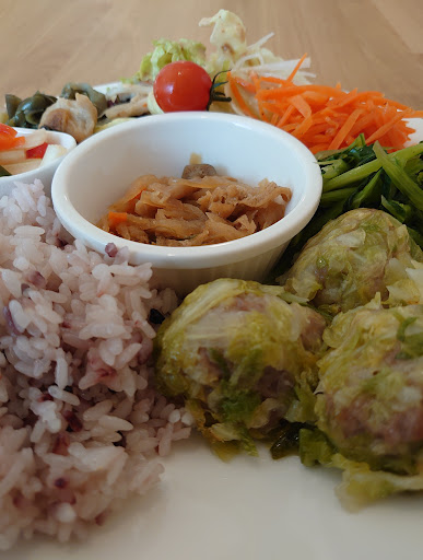 Read more福島クラウンアリーナ(国体記念体育館)近くにあります。週替りのランチセットを食べました。今回はキャベツ焼売をメインにワンプレートに野菜がたっぷり。 ドリンクとデザート付です。コーヒー牛乳プリンと珈琲を頂きました。 そこにちょっと欲張ってバナナシフォンケーキもプラス。美味しく頂きましたよ。