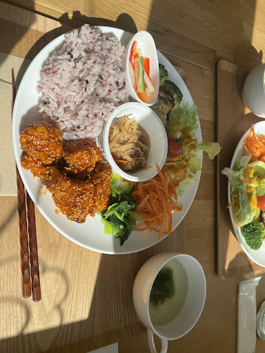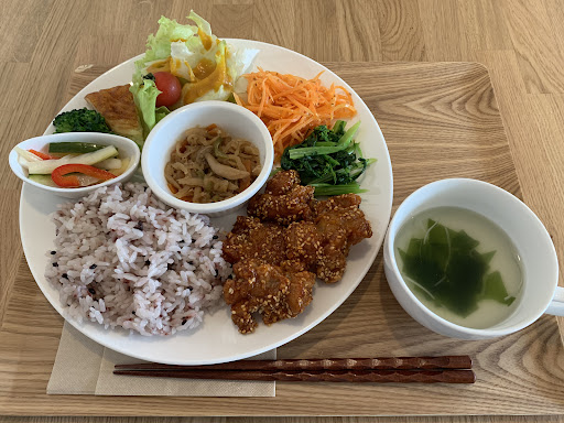 Read more福島ファイヤーボンズの試合会場(トヨタクラウンアリーナ)から徒歩数分のところにあったので、試合前に寄りました。 住宅街にあるお店です。 お店の前にも駐車場があります。 席数は多くなく、大きな窓にはかわいいイラストが書いてあり、光もたくさん入ってくる店内です。 イートインの利用で、席についてから注文をしました。 週替わりのランチはおからコロッケでした。 サラダ、ピクルス、切り干し大根など、野菜たっぷりで彩り鮮やか。 プチデザートではなくシフォンケーキにしていただき、コーヒーも美味しく、幸せな時間をいただきました。 タルトタタンも美味しそうだったし、テイクアウトもできるので、買...