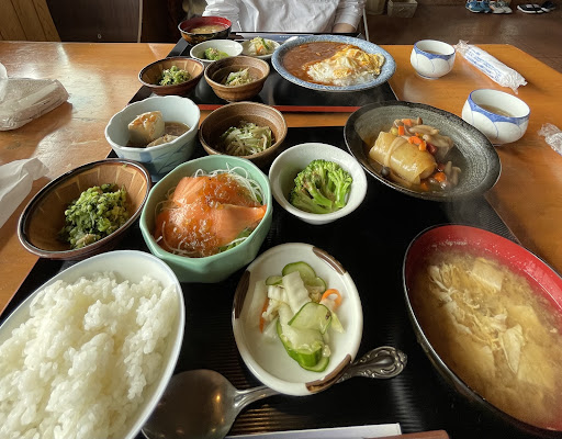 We stumbled upon this cozy restaurant after a long day of snowboarding and arrived just before closing time. Upon entering, a friendly woman asked us to choose our meal before taking a seat—which felt unusual at first. For a moment, we thought we had to pay upfront, but it turns out they simply wanted us to select from a set menu (A/B/C) since there were no physical menus at the tables.