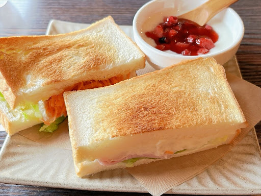2023年5月(平日)の11時過ぎ、今度こそ営業日に。 高齢者を伴い訪問しました。 食事をしたい私にはサンドイッチ。 歯が弱い高齢者には、ティラミスと珈琲を。 サンドイッチは、3種類から2種類を選択するシステムであったかと。美味しいのですが、サンドされたレタス(1枚もの)が少し嚙み切れず、パンに勝ちすぎる感がありました。小さな数枚のレタスをサンドする方が食べやすくなりそうに思いますが、どうでしょう? ティラミス、、、この高齢者はティラミスを好む方ながら、半分を残してしまいました。私がいただいた感想は、濃厚過ぎず、軽い口当たりで「美味しい」でした。だから、当人は空腹でなかったのかもしれません。 阿武隈川と信夫山を臨む西側の大窓は、これらを借景として季節ごとにいろいろな風景を見せるようです。今後は、季節と天候と時間を変えて、珈琲とともに移り変わる雰囲気を楽...
