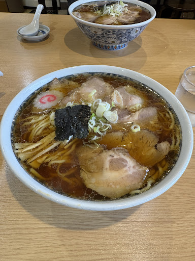 Read more山形では有名な金ちゃんラーメンが福島にもあることを最近知った。市場の近くにあるのだが奥まっていて道路からは見えず目立たない。開店と同時に訪問してみたが店内には客が3人ほど。席は自由に座れたが11:30を過ぎる頃には満席になり相席は必至となった。店内は外から見るよりも広くカウンター、テーブル席の他に小上がりもあって収容人数は30人ほど。メニューを見ると山形の店とほぼ同じで山形名物の冷やしラーメンや子供用ラーメンもある。早速好きな中華そばをオーダー。まずはスープを飲んでみる。さっぱりしているが奥深い味わいで昔懐かしいさも感じられとても美味しい。次に麺をすするが南陽で食べたのとはちょっと違う感じ。麺が平打ちっぽくて食感も違う。これはこれで美味しいと思うが中華そばとしての完成度は落ちる。またチャーシューは使っている部位が違うのか味や食感はあまりよろしく無い。チャーシューのサイズも小さく薄いのでチャーシュ...