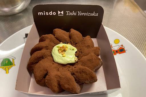 ★ポン・デ・イスパハン(ローズ&ライチ&フランボワーズ)イートイン ¥198 ピエール・エルメの代名詞とも言える「イスパハン」のローズ❤とライチ、フランボワーズ❤の独創的なハーモニーをポン・デ・リングで表現♪♫♬フランボワーズ風味のチョコ&フランボワーズ顆粒でデコレーションした生地に、ローズ&ライチ風味のクリームをサンド( ˘...