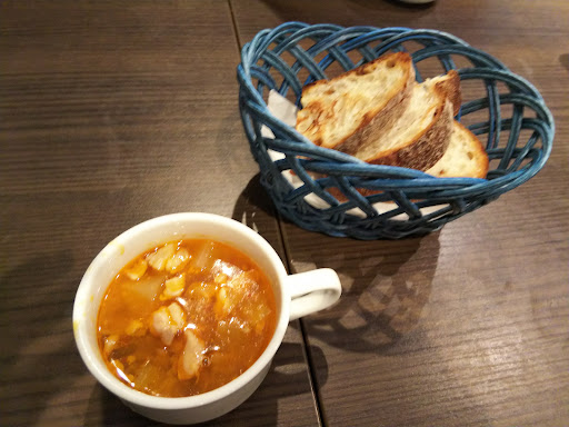 Read moreAコース1480円税込を注文 電話対応接客問題なかったです。 最初のスープがランチのありきたりなコンソメスープではなくて味に奥行きがあっておかわりしたいほど美味しかった。 その後のパスタ、メイン、デザート、コーヒーも本当に美味しかったです。メインのお肉も美味しかったですが野菜達も美味しかったです♪特にブロッコリー🥦筋トレ後の食事に毎回ブロッコリーを食べているんですがこの味付けなら毎日飽きずに食べれると思いました‼︎ これで1480円は安い‼︎しかも大盛り無料‼︎ 大満足です‼︎ポイントカードは有効期限1年ですが6ポイント貯めれば980円のランチが半額で食べれます。また絶対行きます。