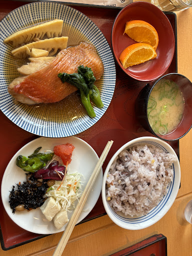 イオンモール福津の2階にある魚メインのお店。 正直、目の前の魚屋さんが行列で入れなかったので入店。 サラダやリンゴ酢の飲み物、雑穀米、果物、もろもろ健康志向にはよかった。 金目鯛の煮付けを選んだが普通にめちゃくちゃ美味い。 ビュッフェで漬物やひじきなど、ごはんの共も多くて、 味噌汁などもおかわり自由。提供も早い。 スタッフも対応いいし、通りかかったら、もう一度行くと思いま...