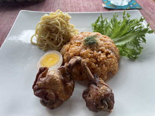 インドネシア料理が食べれると言うことで、伺いました。ランチセットでナシゴレンがあったので、注文。待つこと20分、料理がで出来ましたが、うーむ、どうしてこんなに時間がかかるのかわからないくらいの品。少しガッカリしながら、味に期待しました。さっそくナシゴレンを。げっ、拝見した評価は高かったが、まったくナシゴレンではない。これはチキンライス、それもベタベタな。パスタも味がしない。唯一の救いは、小さなチキン🍗だけ。うーむ、価値的には、350円が妥当。ロケーションと、ビール🍺は最高でした。料理は辞めて、ドリンクをおすすめ致します...