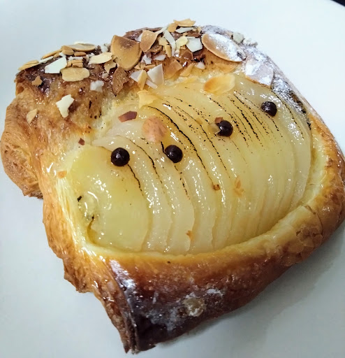 Read more目立つ看板も無いので知らないと通り過ぎてしまいそう。対面式で店員さんがショーケースから取ってくれます。冷蔵のものと食パンやスイーツは自分でカウンターへ。 惣菜系スイーツ系様々で見るのも選ぶのも楽しい。奥の方からいらっしゃいませ。ありがとうございましたの声も聞こえます。オーナーさんかな。 枝豆とサラミとパルメザン、自家製スモークチキンとチーズのカスクルート、味宝卵のクリームパン、ショコラポワールを。色々説明したいんですけど上手に書けそうにないので写真で想像してみて下さい。すみません笑。其々食感も違って色々買って正解でした。クリームパンはバニラビーンズたっぷり優しい甘さ。きび砂糖使用らしいです。 後日クロワッサン等も買ってみましたが、これも美味しかったです。 イートイン出来そうなテラス席有り。コーヒーも買えます。店舗前に駐車場有り。縁石?の位置のせいで微妙に入りづらいのだけが残念...