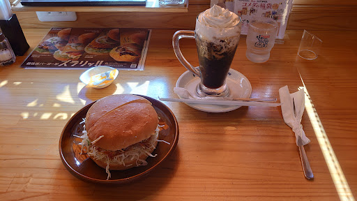 Read moreJR福間駅を下車して徒歩で数分くらいで来店。 アイス・ド・ティーフロート(無糖)、ドミグラスバーガー(半分にカット)、お持ち帰りで羊羹を発注。 お時間かからずちゃちゃっと、待ちど。 ドミグラスソースうまい。 ちなみに、お持ち帰り商品はそのままでのお渡しですね。